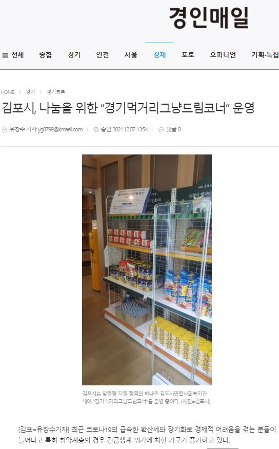 - [경인매일] 김포시, 나눔을 위한 경기먹거리 그냥드림코너 운영.JPG (63.8K) 18회 다운로드DATE : 2021-12-09 19:46:02