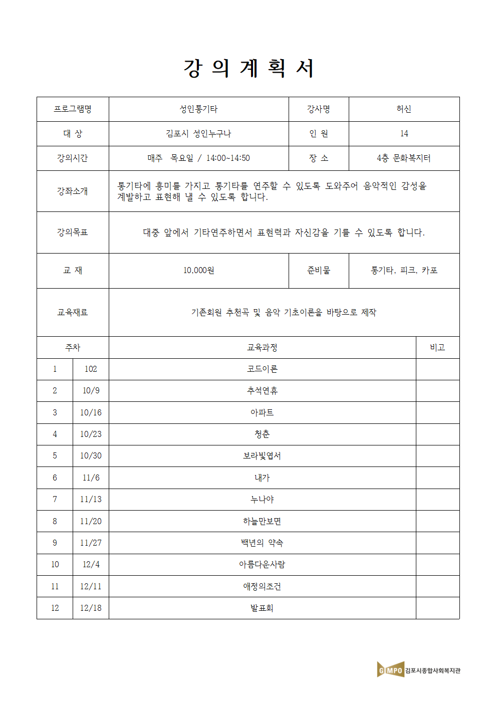 성인 통기타 중급반