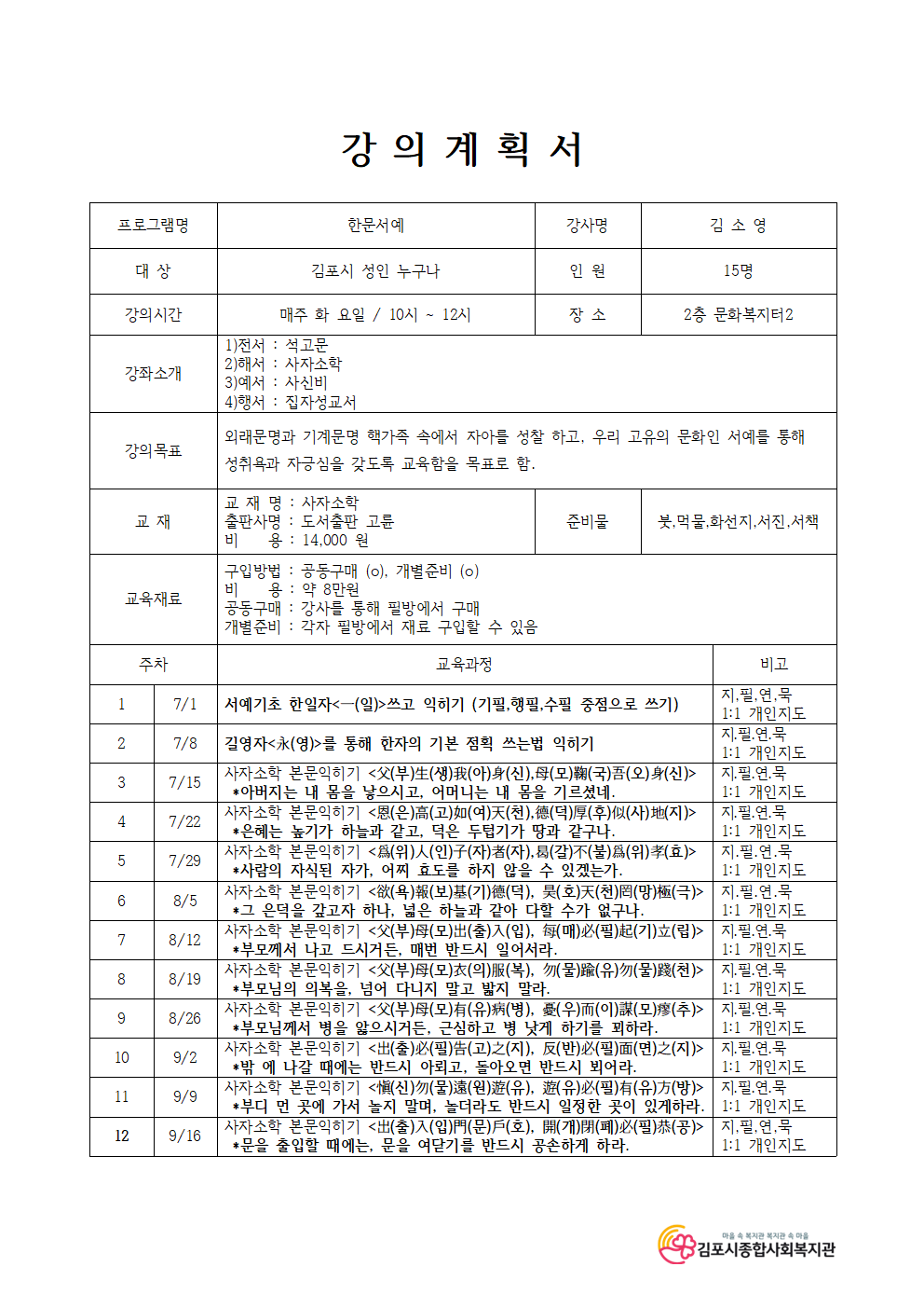 ※정원의 50% 인원만 온라인 모집 진행하며 잔여 인원은 방문접수 (6. 23.(월)~7. 31.(목) 09:00~18:00)로 진행하니 참고바랍니다.