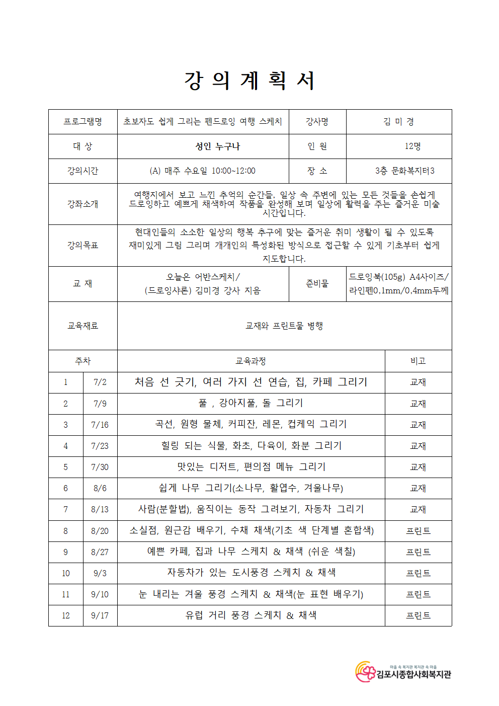 펜드로잉 여행스케치 A반
