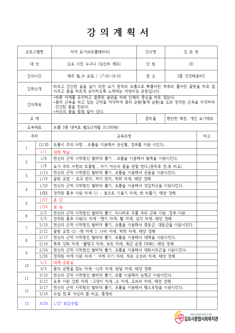 17:30 ~ 18:30 (매주 월요일, 수요일)