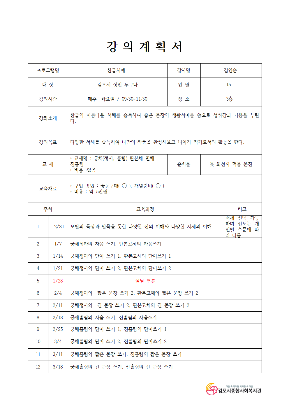 ※정원의 50% 인원만 온라인 모집 진행하며 잔여 인원은 방문접수 (12. 23.(월)~2025. 1. 31.(금) 09:00~18:00)로 진행하니 참고바랍니다.