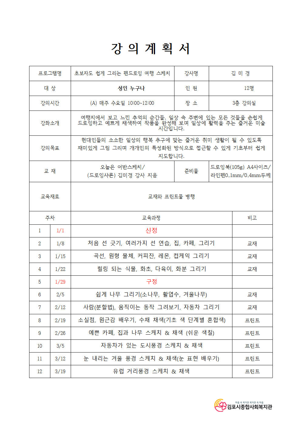 펜드로잉 여행스케치 A반(수요일)