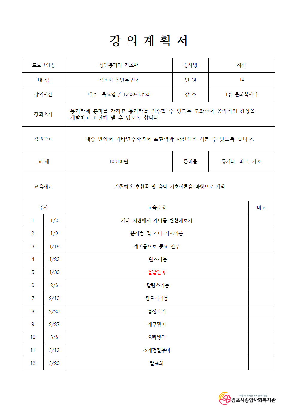성인 통기타 초급반