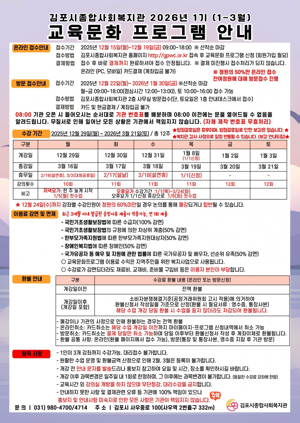 ※필독 2026년 1분기 교육문화 프로그램 접수 안내