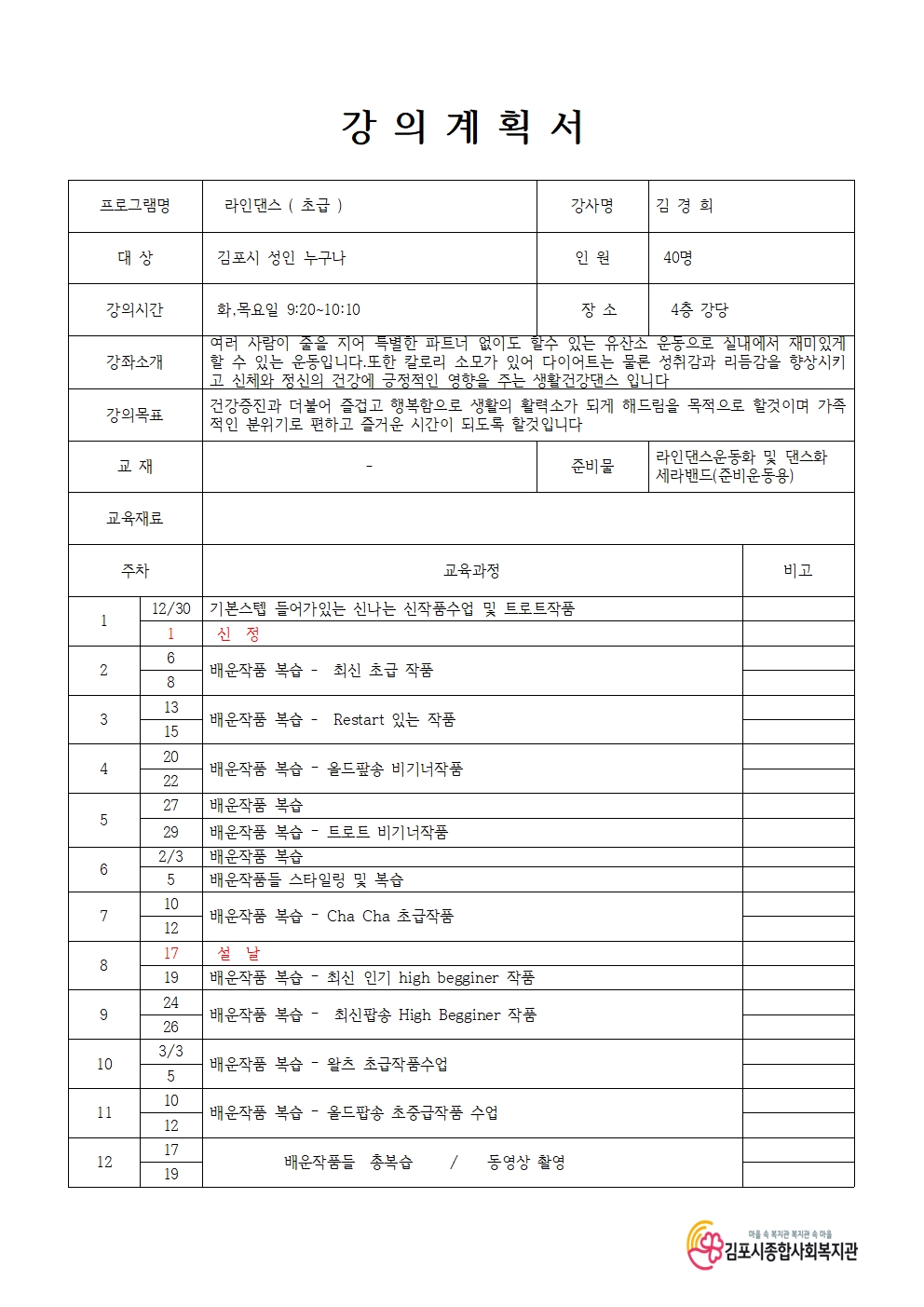 라인댄스 초급반