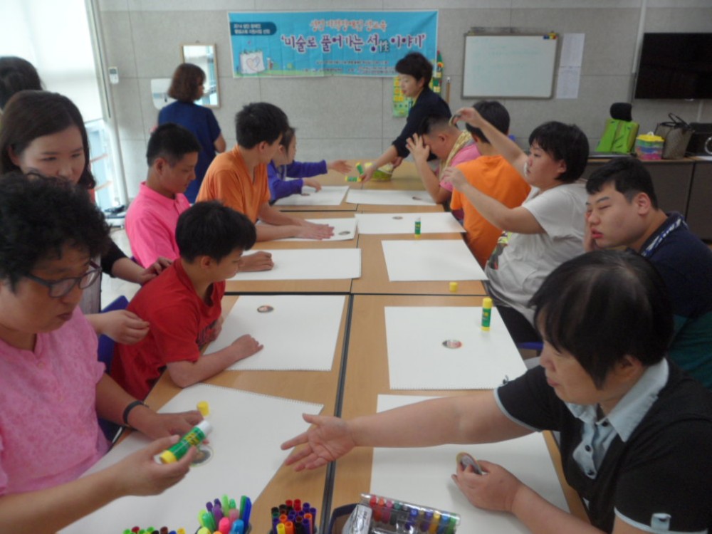 성인 지적장애인 성교육 \'미술로 풀어가는 성(性)이야기\'는 성교육 전문강사 3명을 초빙하여 성인 지적장애인의 장애특성과 인지능력을 고려하여 쉽게 체험하며 배울 수 있는 \'미술활동\'을 접목한 성교육으로 진행됩니다.