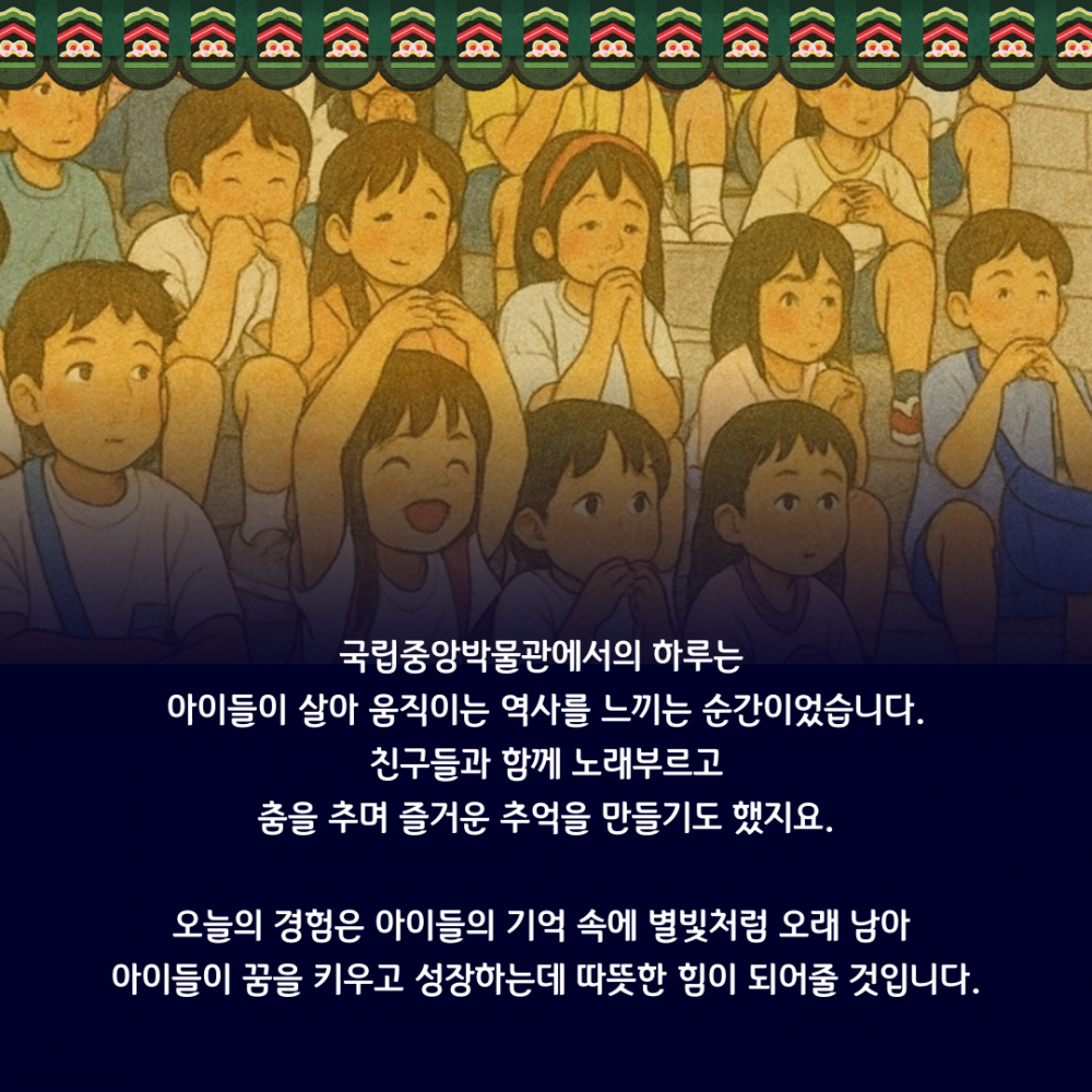 오늘 체험한 문화여행의 추억과 기억이 아이들의 꿈을 키우고 성장하는데 따뜻한 힘이 되어줄 것입니다.
