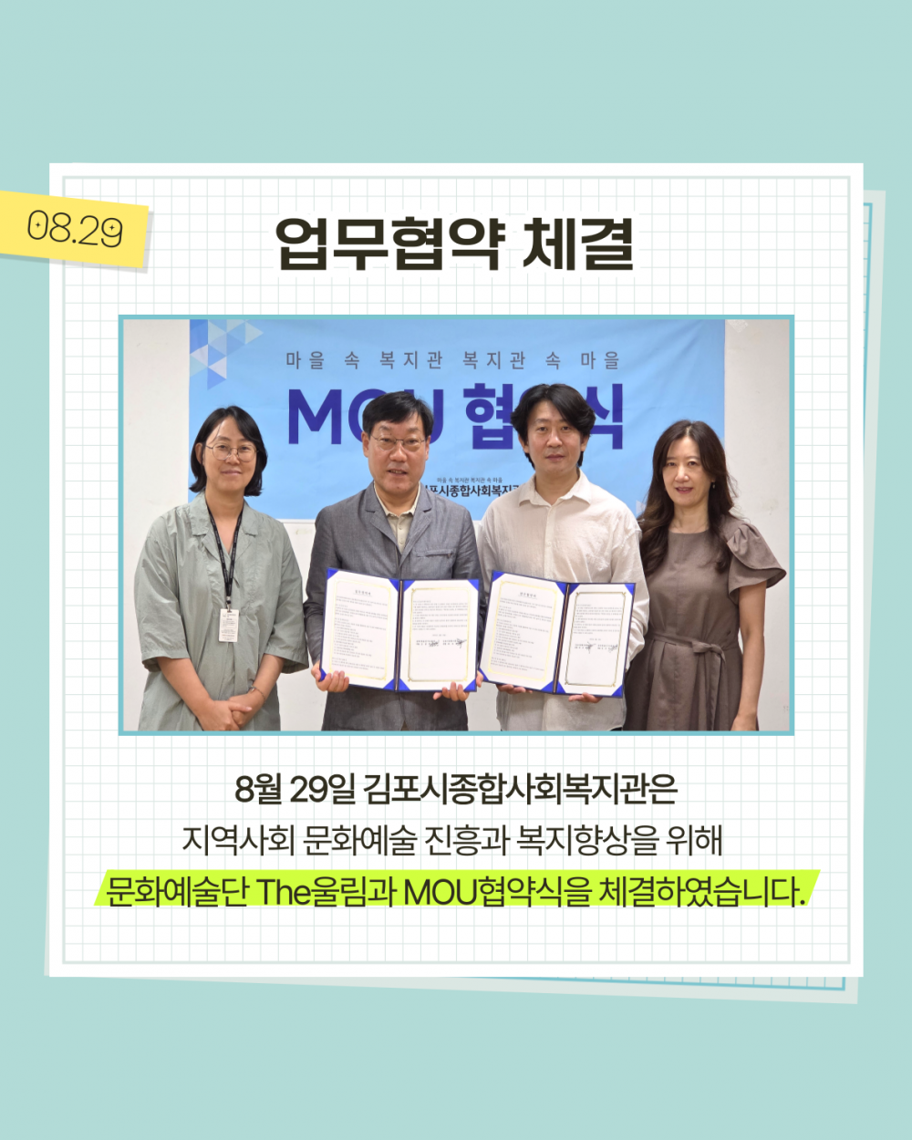 문화예술단The울림과 MOU협약식을 체결하였습니다.
