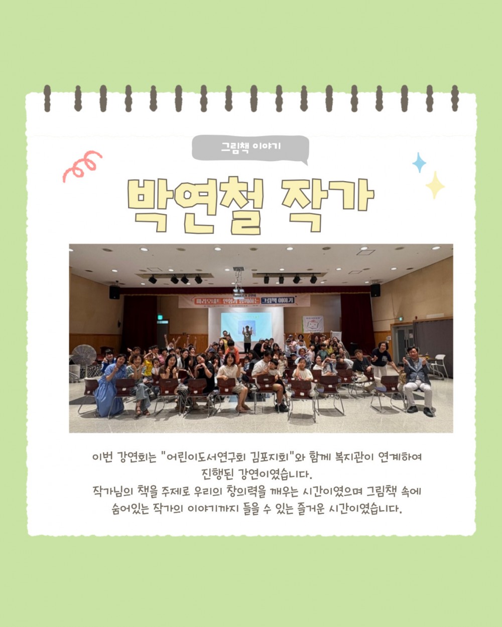 지난 7월 12일, 어린이도서연구회 김포지회와 연계하여 진행 된 "박연철작가 그림책 이야기"가 진행되었습니다~!
