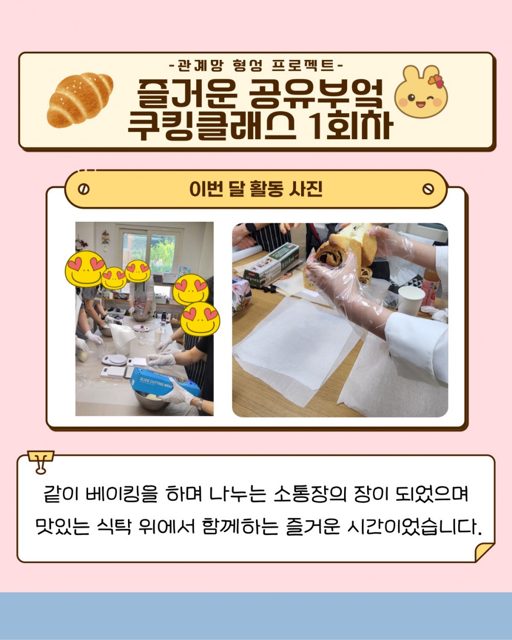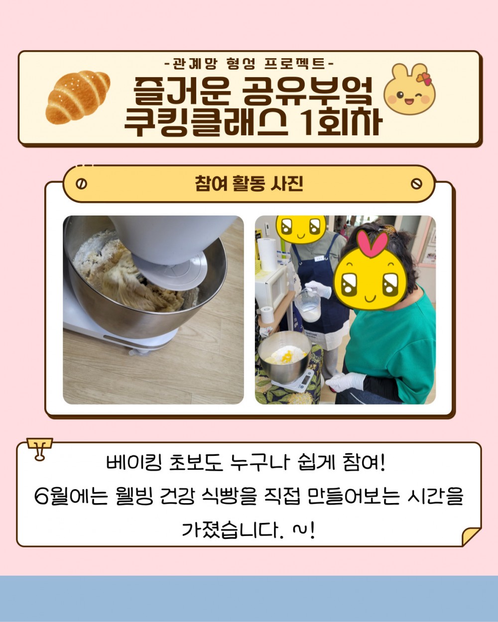 - 강사초빙 형태로 중장년층에 건강한 쿠킹 클래스 4회 활동