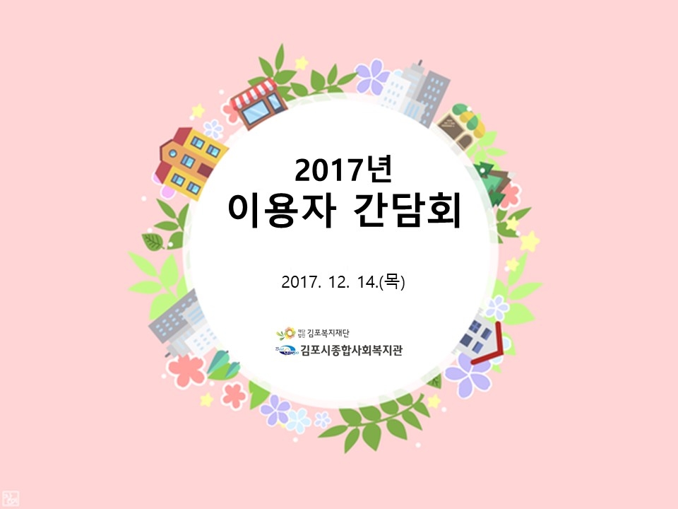 김포시종합사회복지관(관장 서상범)에서는 12월 14일(목) 1층 희망셈터에서 2017년 이용자 간담회가 진행되었습니다.