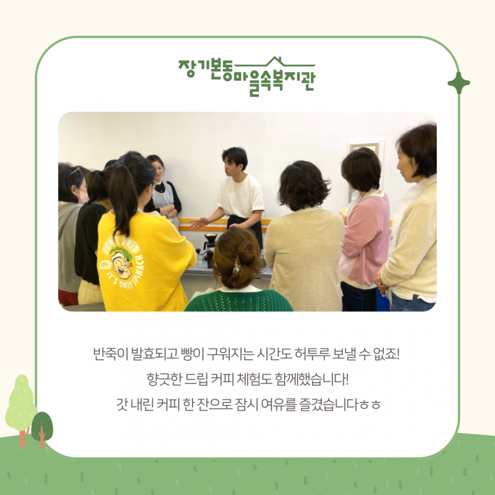장기본동 행정복지센터에서 진행된 빵+드립 무료특강