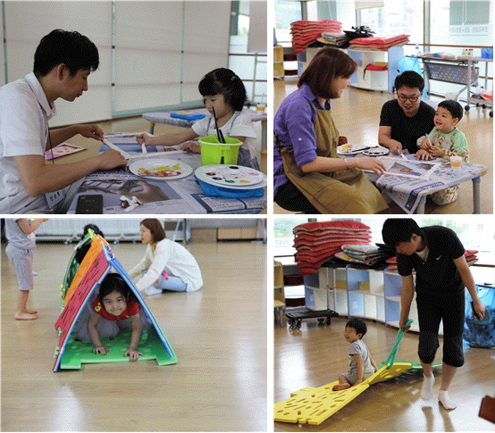 심리미술활동으로 \"엄마떠올려 그리기&액자만들기\"를 통해 엄마의 모습을 묘사하여 아이가 생각하는 엄마의 모습을 이해하고 엄마를 그려 액자만들기를 통해 엄마에게 선물하는 프로그램을 진행하고, 신체활동으로 \"오감체험활동\"을 실시하여 소근육발달을 촉진시키는 퍼즐놀이와 아빠와 함께하는 다양한 신체놀이를 배우며 즐거운 시간을 보냈습니다.