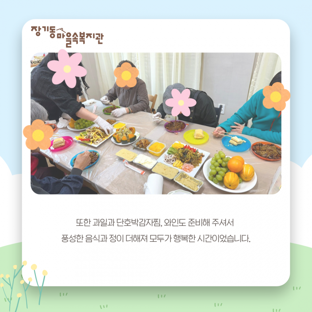 풍성한 음식과 정이 더해져 모두가 행복한 시간이었습니다.