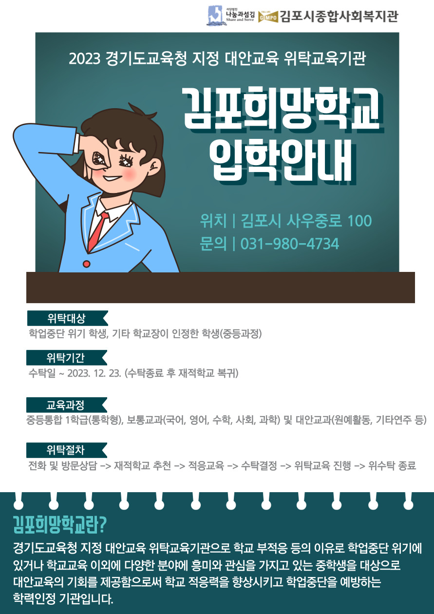 모집완료 2023 대안교육 위탁교육기관 '김포희망학교' 입학안내