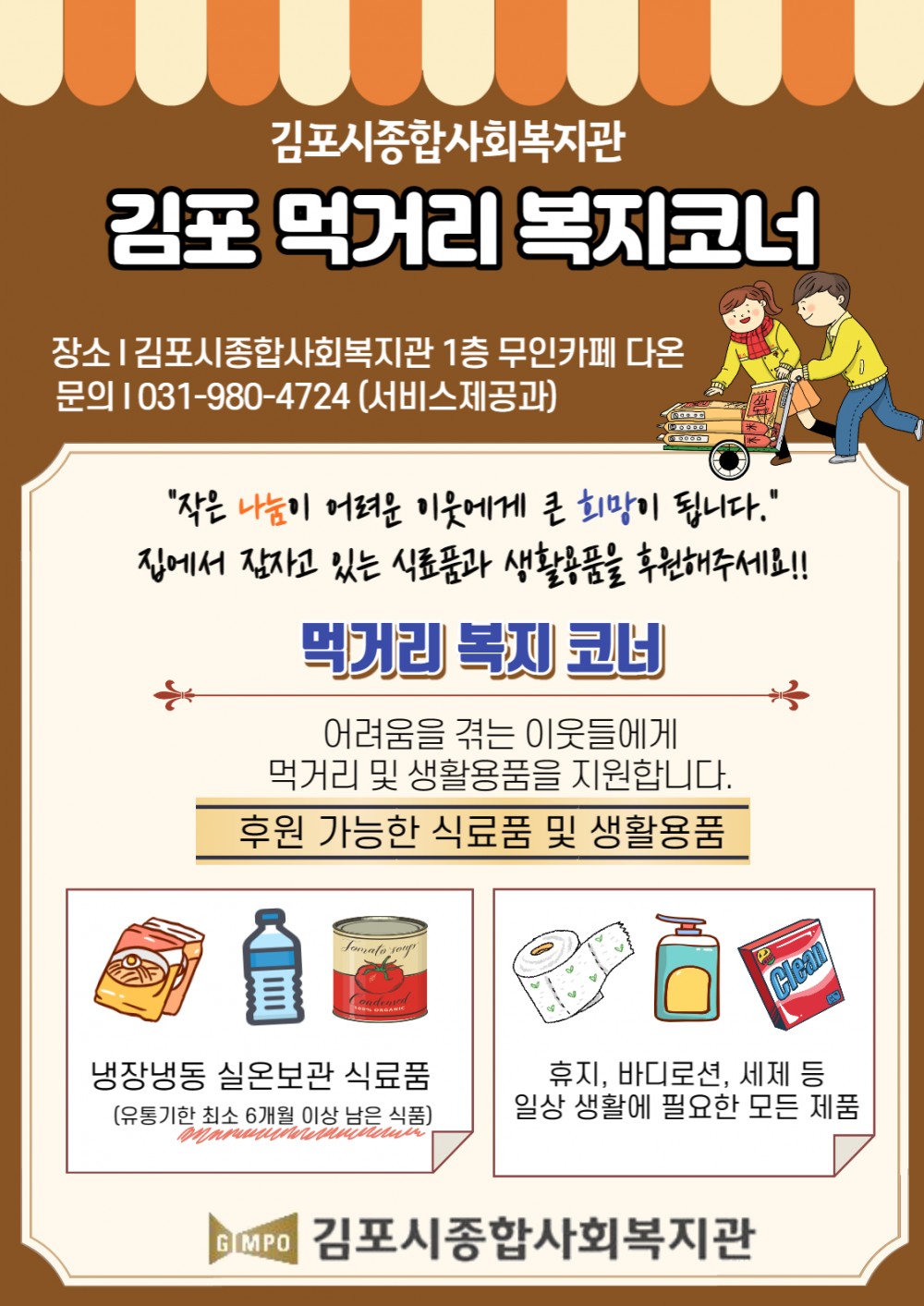 모집완료 김포 먹거리 복지코너 후원물품을 받습니다!!