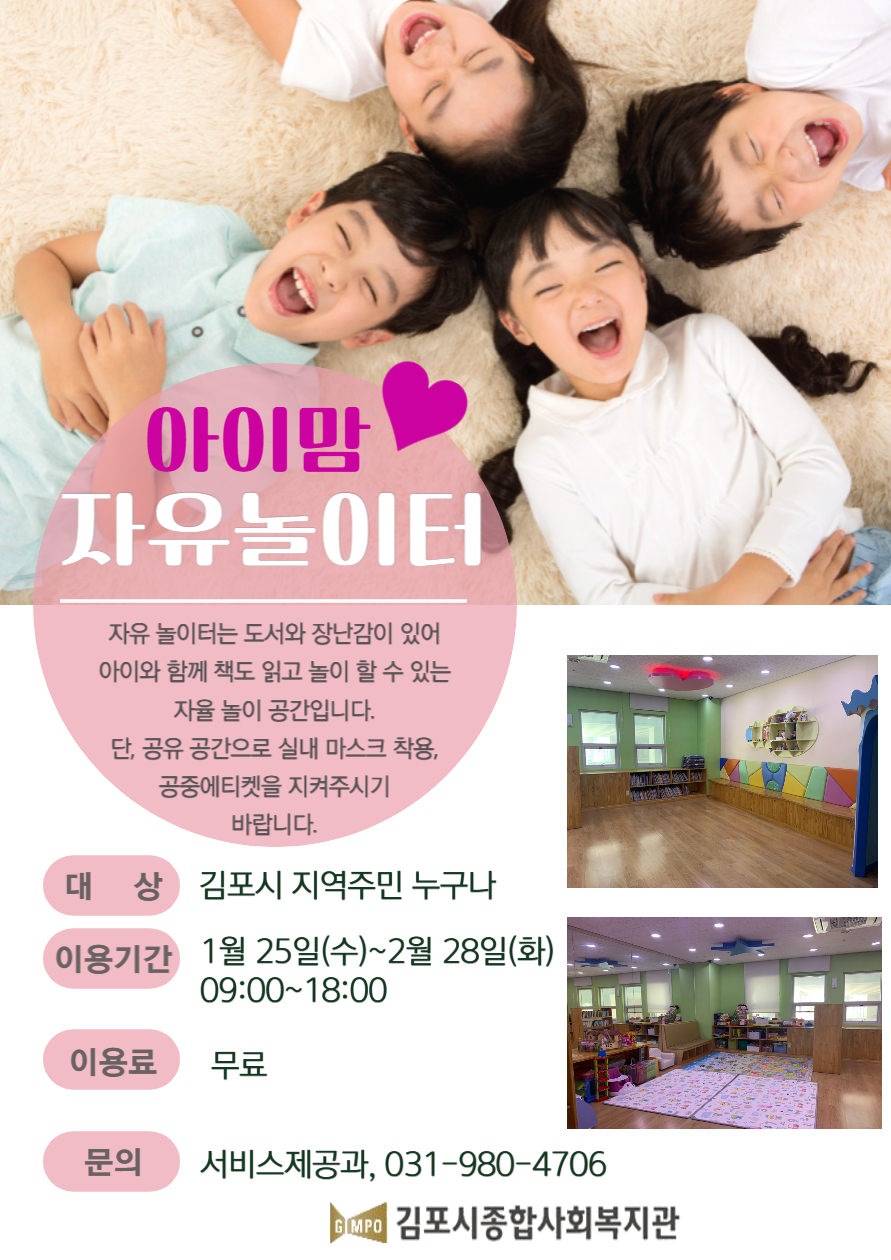 프린트 목록 모집완료 1월~2월 아이맘자유놀이터 이용 안내 페이지 정보 김포시종합사회복지관 조회 866 입력 2023-01-16 13:20 댓글 0 본문 문의 : 서비스제공과 031-980-4706 첨부파일 001.jpg (895.7K) 33회 다운로드DATE : 2023-01-16 13:20:27 프린트 목록 이전글김포늘봄TV 방송체험 '아나운서' 안내 2023.01.18 다음글설맞이 지역주민 먹거리 나눔 행사_부침개 먹을 결심 2023.01.12 댓글 0 댓글목록 등록된 댓글이 없습니다.