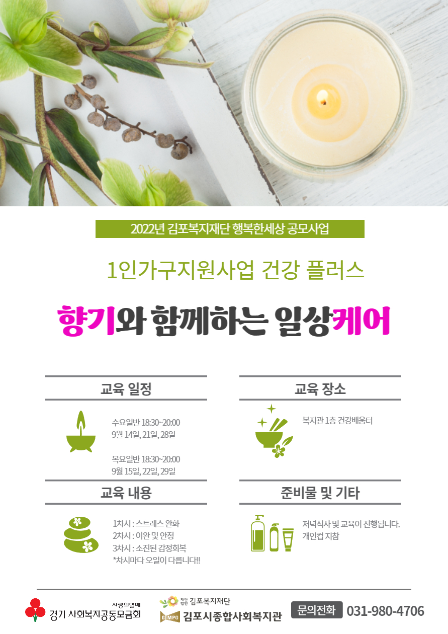 모집완료 1인가구지원사업 아로마테라피 안내