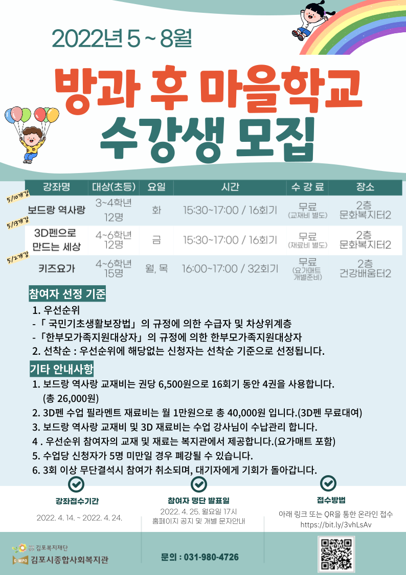 모집완료 2022 경기 방과 후 마을학교 수강생 모집