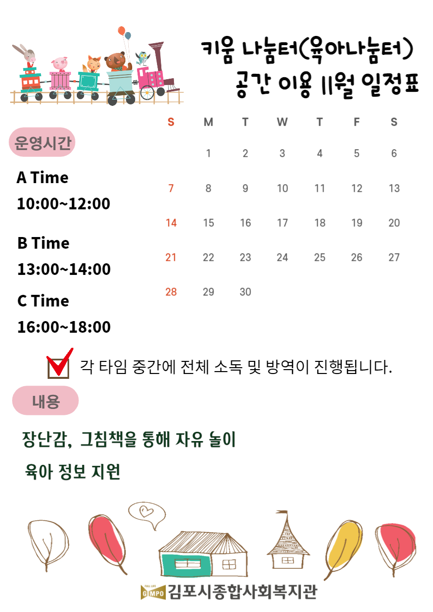 ???? 키움나눔터 이용기간 : 11/1~11/26 매주 월~금요일 10시, 13시, 16시 / 시간별 2가정 / 무료