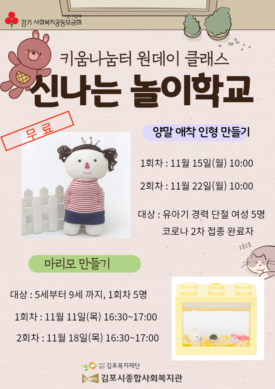 모집완료 신나는 놀이학교 2탄 참여자 모집