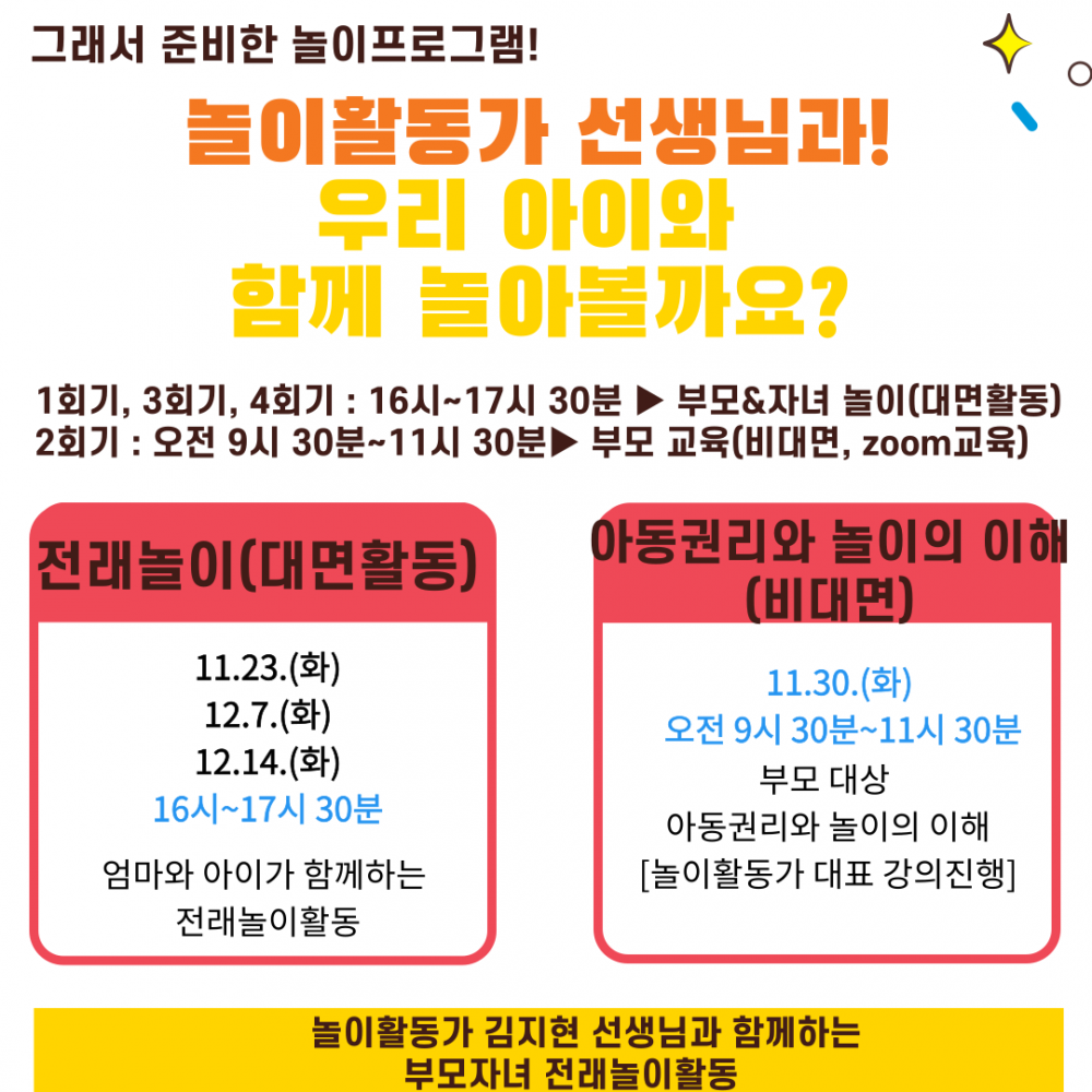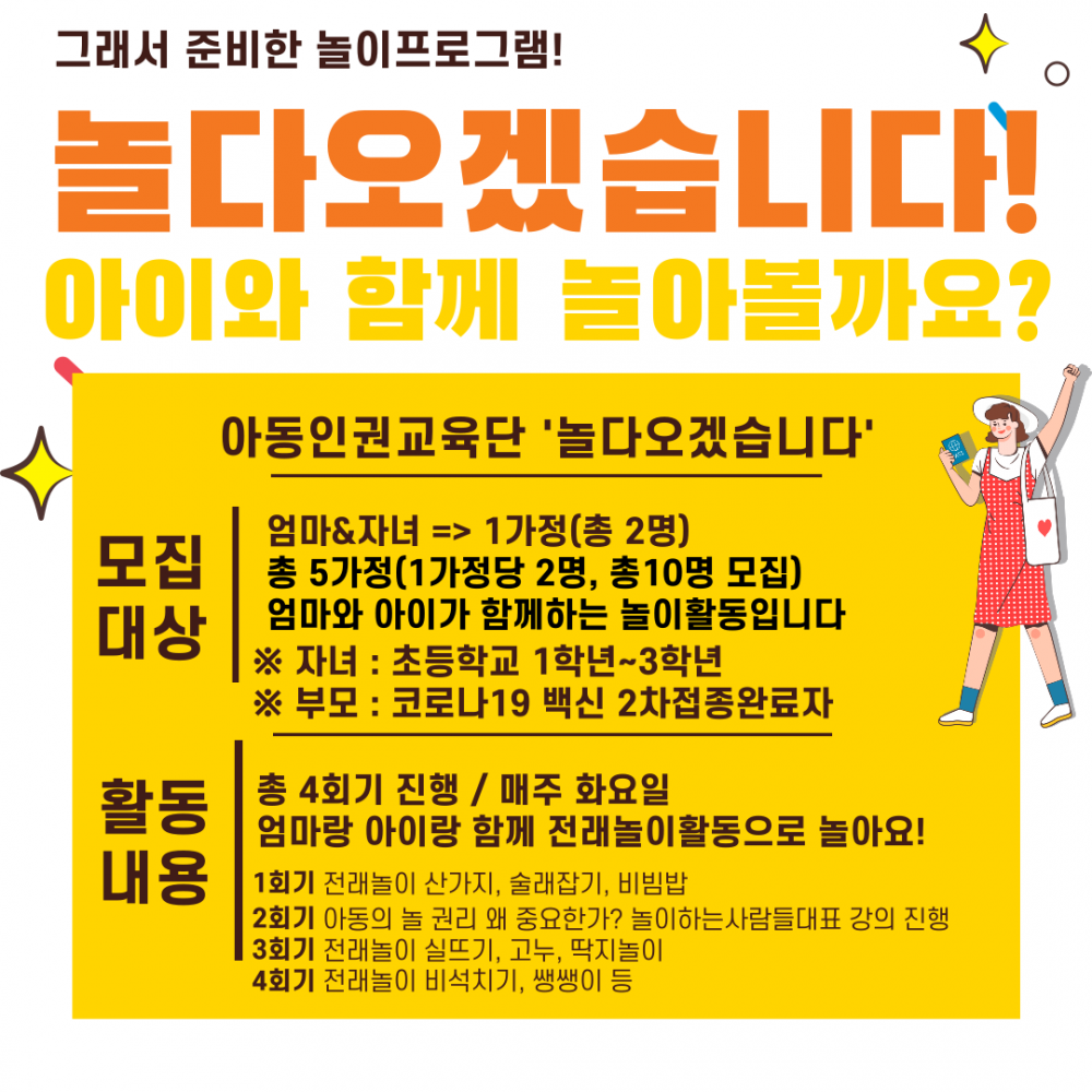 모집완료 [아동인권교육단] 부모와 자녀가 함께하는 놀이활동 '놀다오겠습니다'