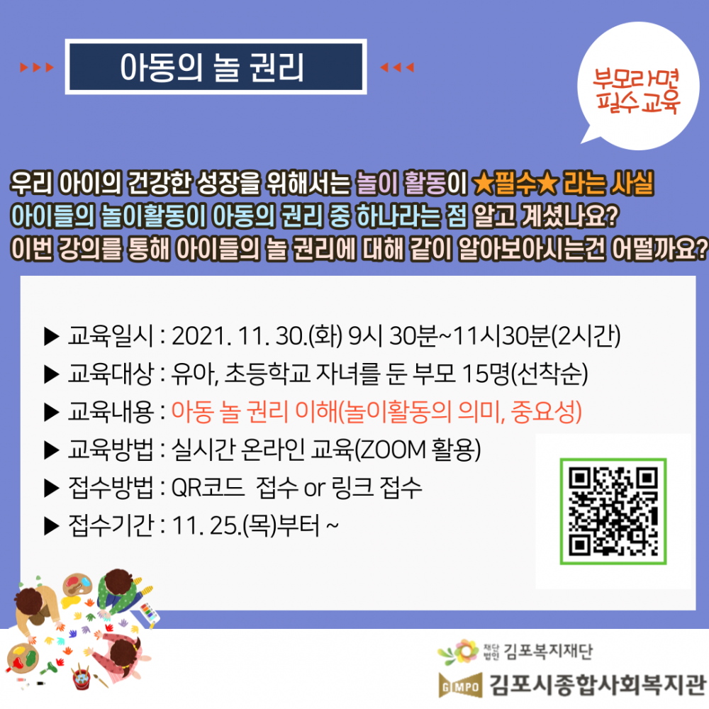 모집완료 아동 놀 권리 [아이들에게 놀이활동이 왜 중요할깓요?]
