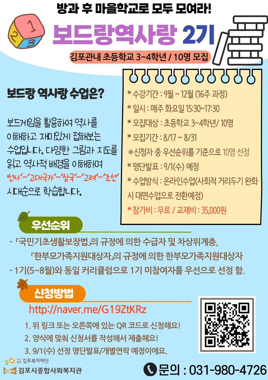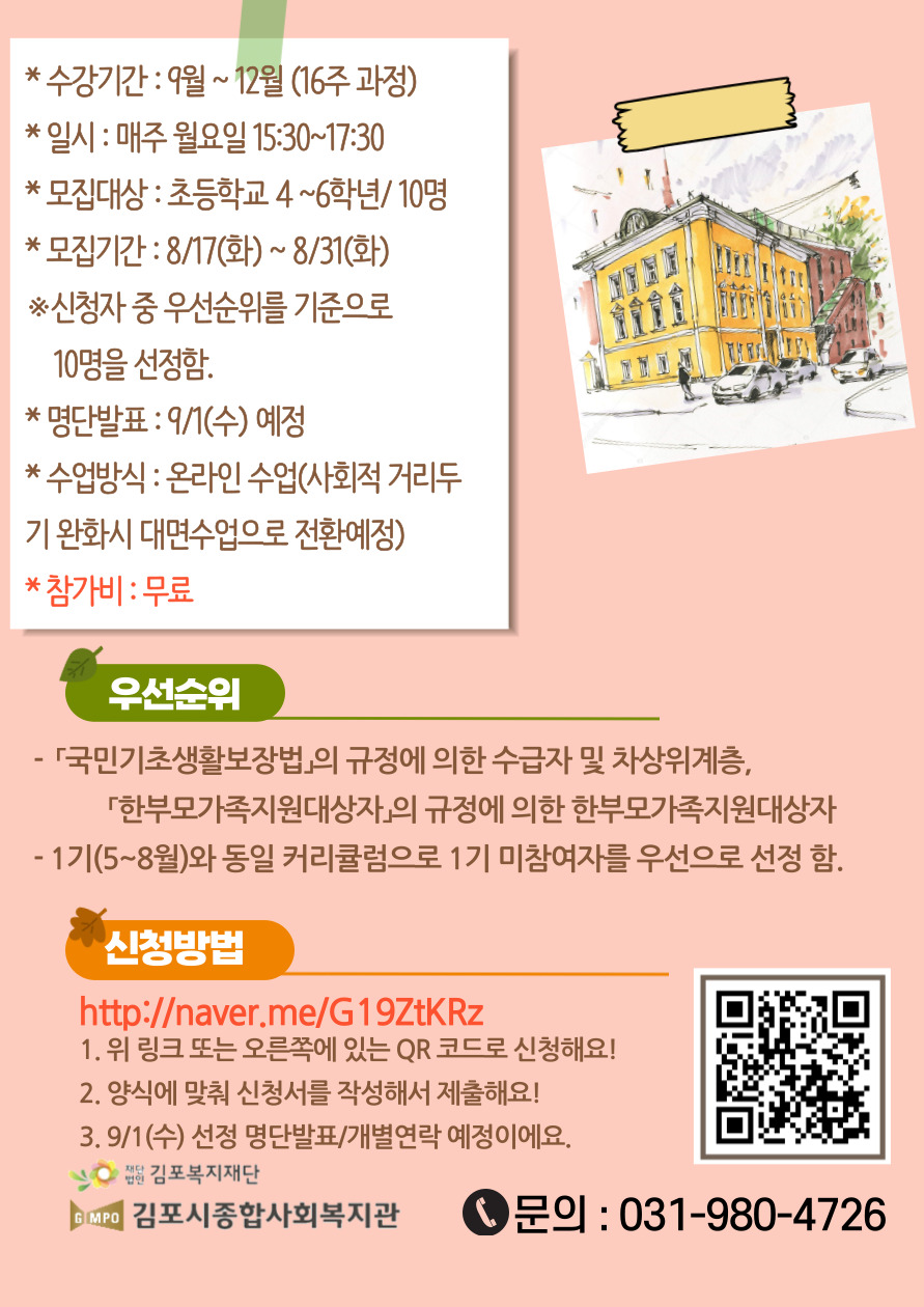 모집완료 2021 경기 방과 후 마을학교(어반스케치, 보드랑역사랑) 2기 참여학생 모집 / 참여명단 발표!!
