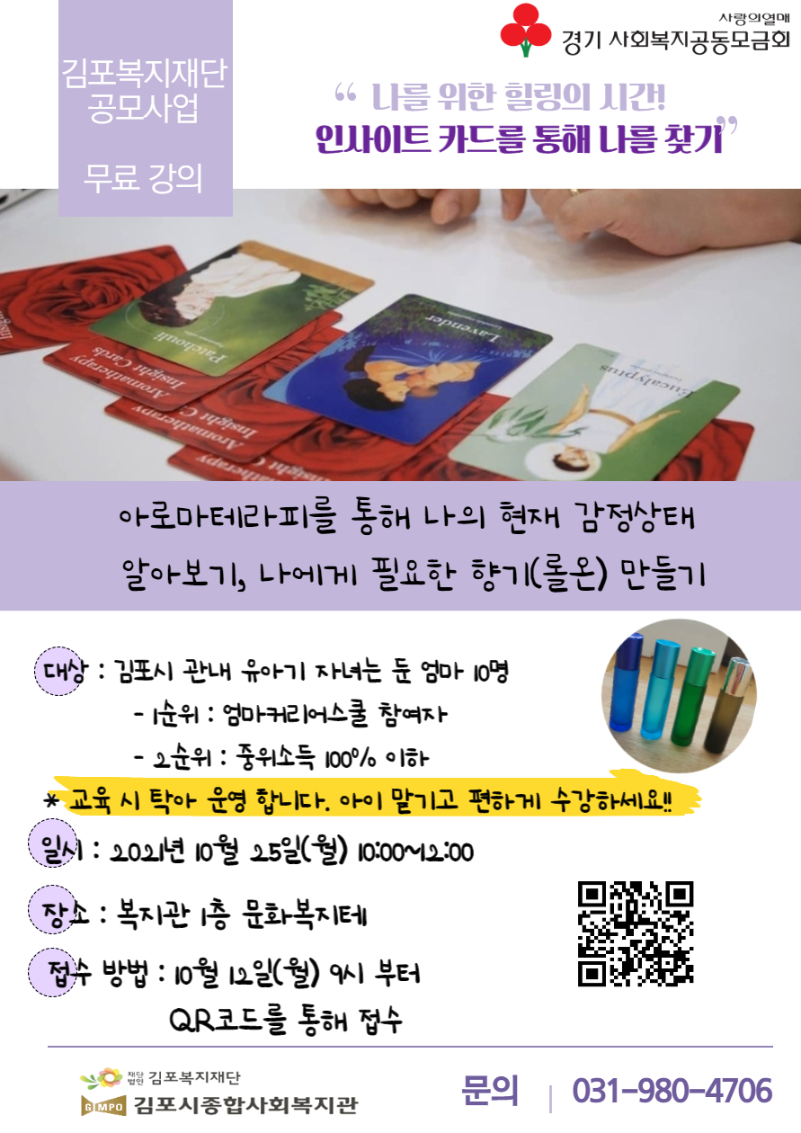 모집완료 유아기 경력단절 여성들을 위한 아로마인사이트 카드를 통해 나를 찾기 수강생 모집