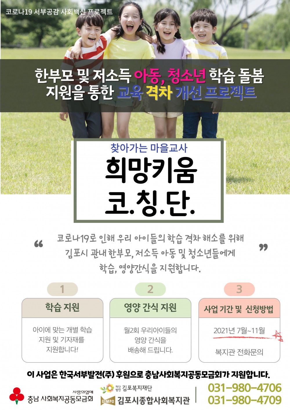 한부모 및 저소득 아동, 청소년 학습 돌봄 지원을 통한 교육 격차 개선 프로젝트 "찾아가는 마을교사 희망키움 코칭단"