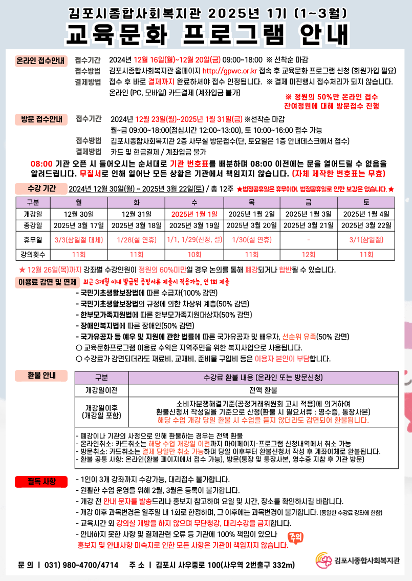 모집완료 2025년 1기(1월~3월) 교육문화 프로그램 안내