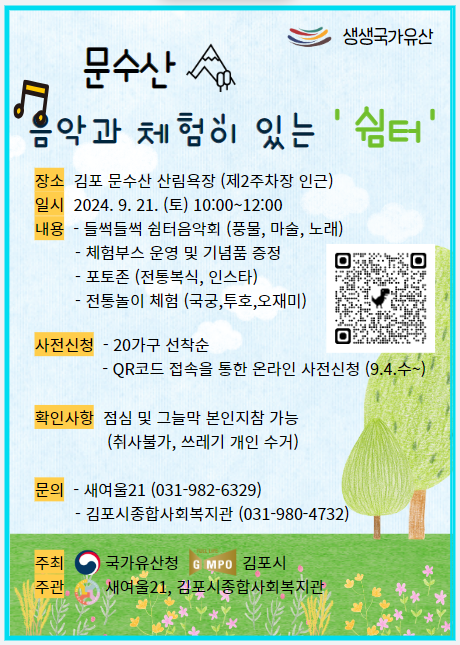 모집중 문수산 음악과 체험이 있는 '쉼터' 참여자 모집