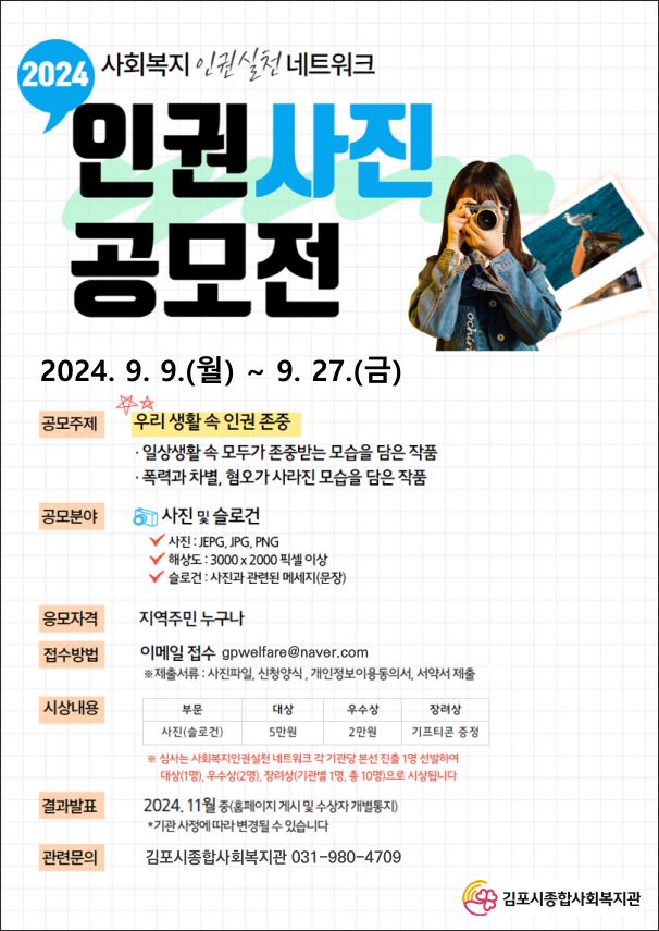 모집완료 김포시종합사회복지관 인권사진 공모전