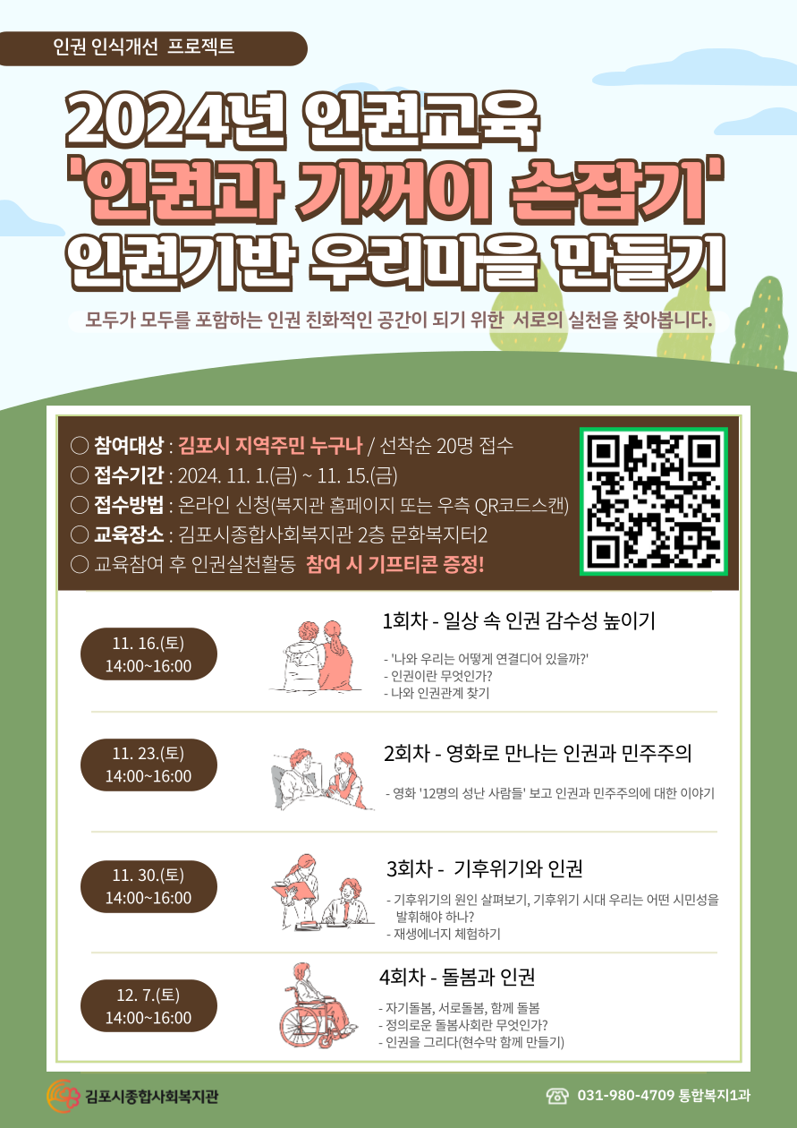 모집완료 2024년 인권교육 신청 '인권과 기꺼이 손잡기'
