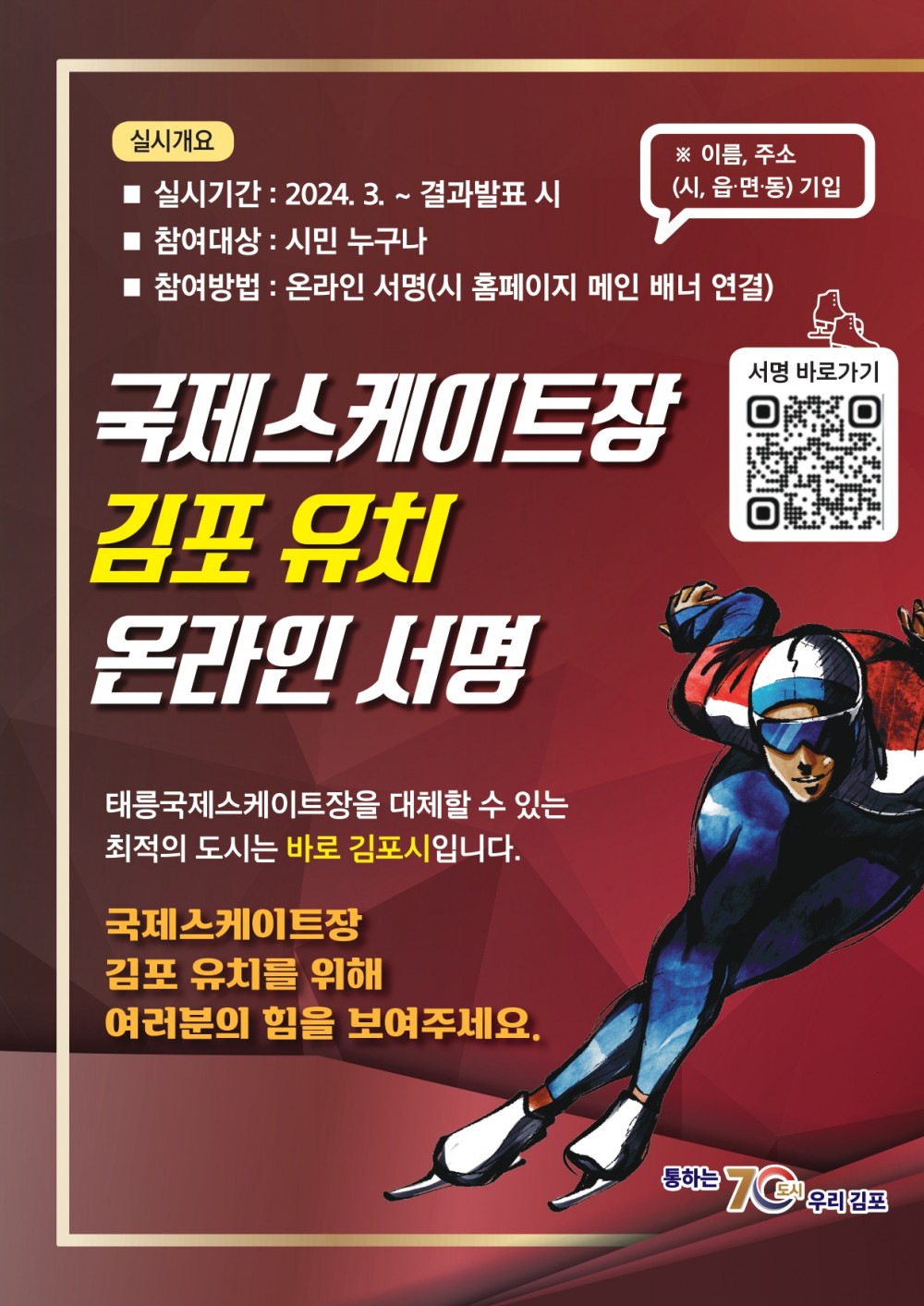 모집완료 국제스케이트장 김포 유치 온라인 서명