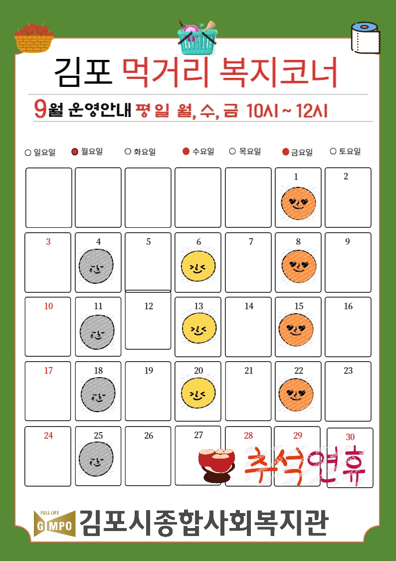 모집완료 9월 김포먹거리복지코너 운영 안내