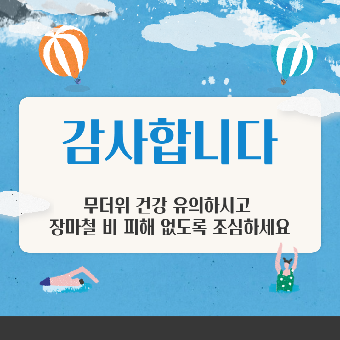 무더위 조심하시고, 몸에 좋은 음식 잘 챙겨 드시고 더위 조심하세요!