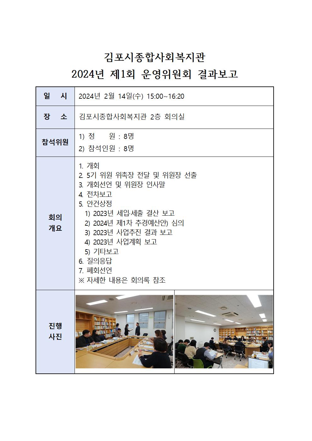 2024년 제1차 운영위원회 회의 결과 공지