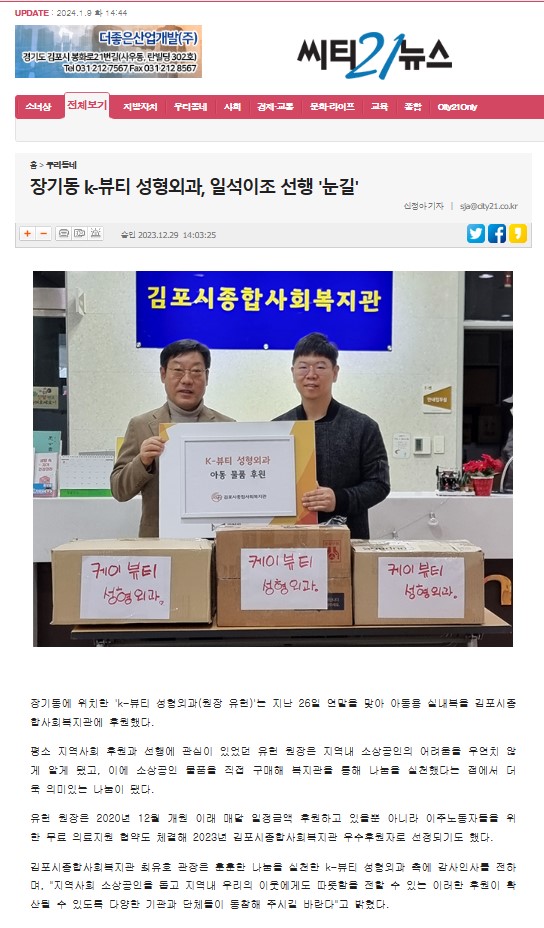 - 이전글[김포티브이] 장기동 ‘K-뷰티 성형외과’ 일석 이조 선행 2024.01.09