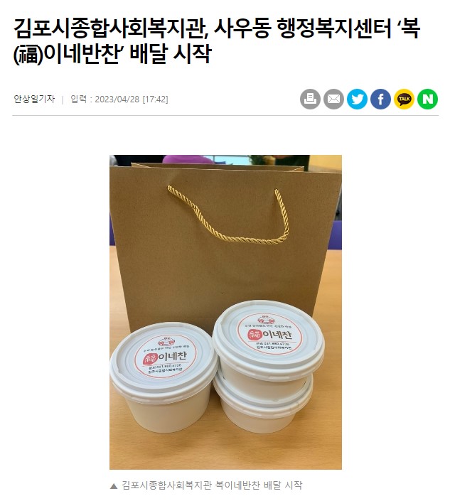 - 다음글[김포시민신문] 김포시종합사회복지관 ‘복(福)이네반찬’ 배달 시작 2023.05.04