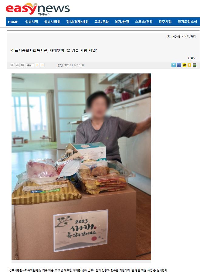 [이지뉴스] 김포시종합사회복지관, 새해맞이 설명절지원사업