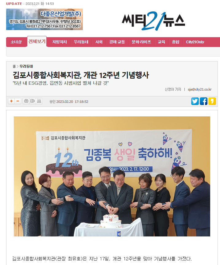 - [씨티21뉴스] 김포시종합사회복지관, 개관 12주년 기념행사.png (458.6K) 27회 다운로드DATE : 2023-02-21 15:16:30