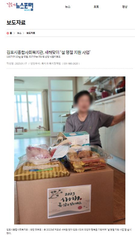 - [김포시뉴스포털] 김포시종합사회복지관, 새해맞이 설명절지원사업.JPG (51.7K) 27회 다운로드DATE : 2023-01-19 09:23:56