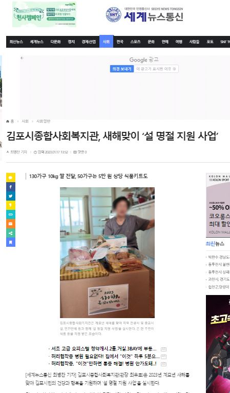 - 다음글[김포시뉴스포털] 김포시종합사회복지관, 새해맞이 설명절지원사업 2023.01.19