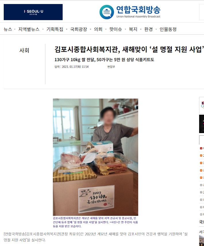 - [연합국회방송] 김포시종합사회복지관, 새해맞이 설명절지원사업.JPG (76.3K) 28회 다운로드DATE : 2023-01-19 09:30:14