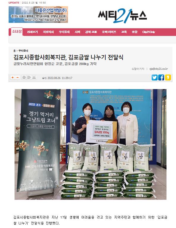 - 다음글[김포신문] 김포시종합사회복지관 “김포금쌀 나누기” 2022.08.29