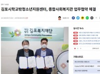 [중도일보] 김포시학교밖청소년지원센터, 종합사회복지관 업무협약 체결