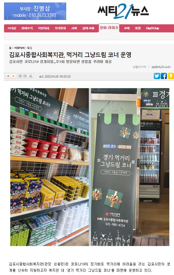 - [씨티21뉴스] 김포시종합사회복지관, 먹거리 그냥드림코너 운영.JPG (117.5K) 28회 다운로드DATE : 2022-04-28 11:29:04