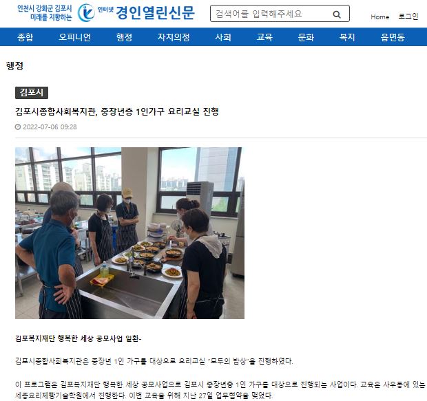 - [경인열린신문] 김포시종합사회복지관, 중장년층 1인가구 요리교실 운영.JPG (62.4K) 31회 다운로드DATE : 2022-07-07 14:38:37